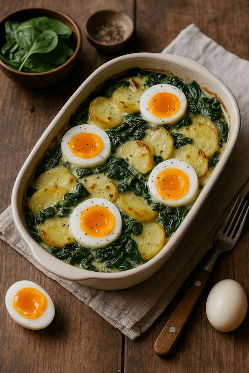 đ„Ź 1. Gratin dâĂ©pinards, pommes de terre et Ćufs mollets